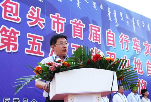 (区委副书记张海峰宣布包头市首届自行车文化艺术节暨第五届五当召山地自行车越野赛启动)